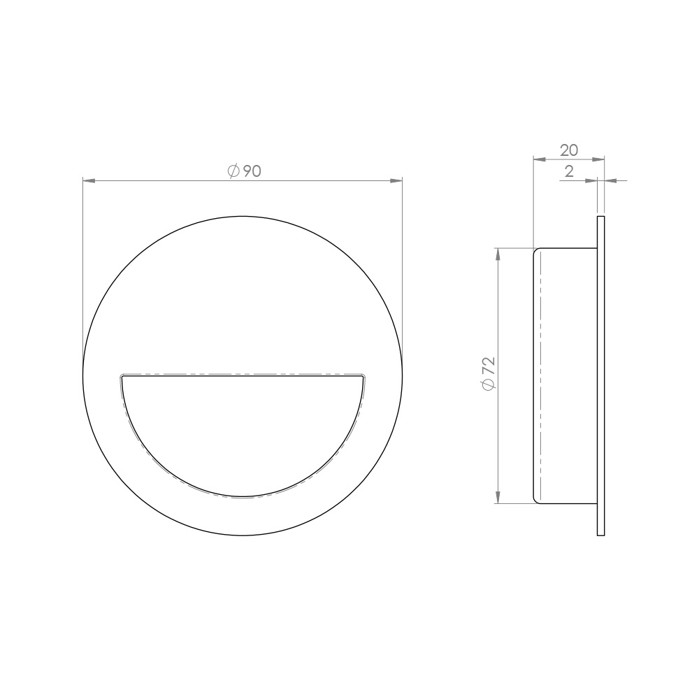 90mm Dia. circular shaped low profile flush pull which is used mainly on sliding doors. The main cup is recessed back into the door to leave a flush appearance. For use on doors, wardrobes or cupboards. Fire door rated. Suitable for domestic and commercial use.