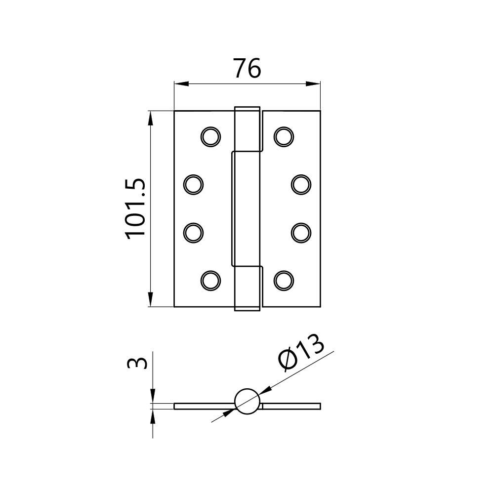 Radius Corner 101 x 76 x 3.0mm Shrouded Bearing Hinge